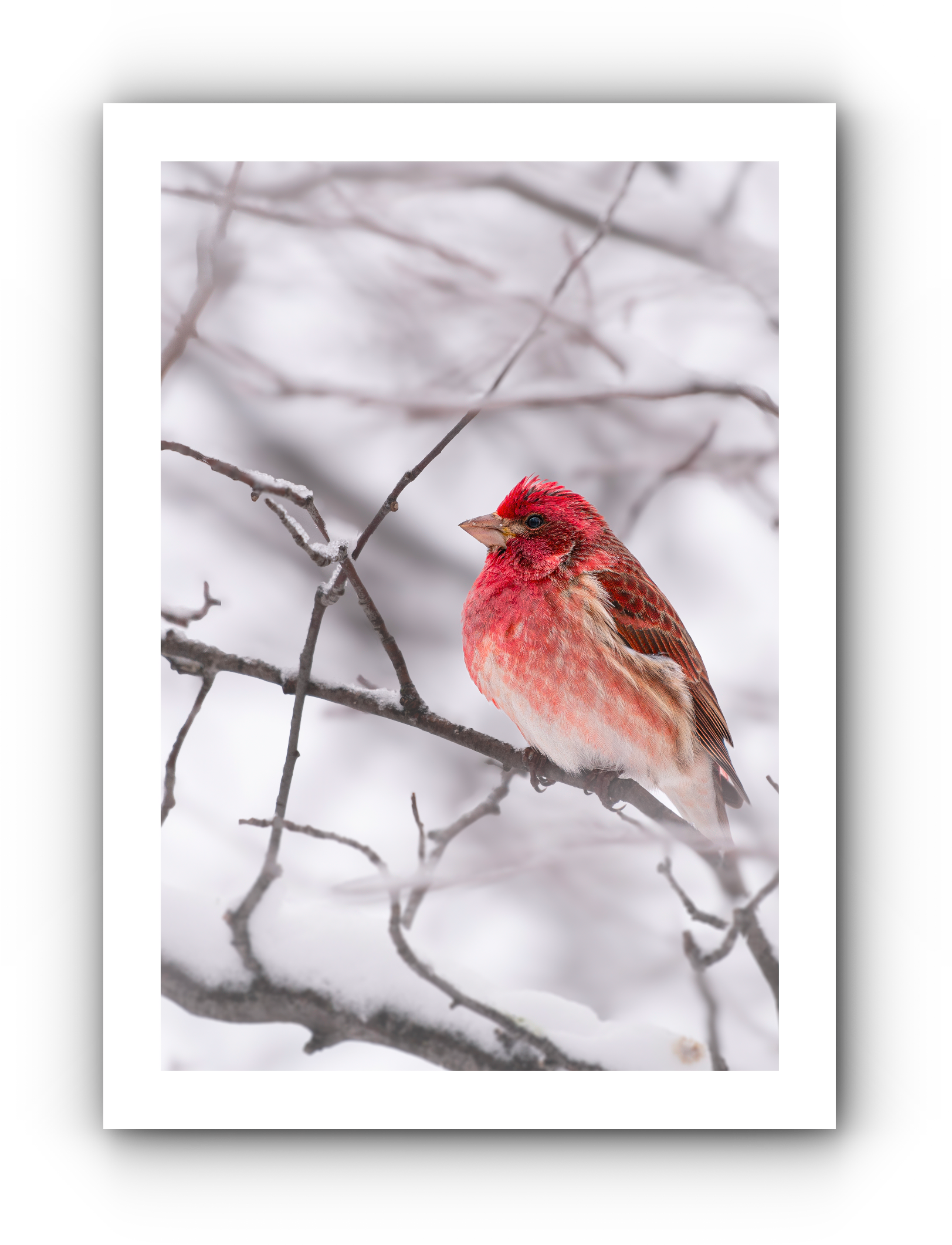 Un joli roselin pourpré dans son plumage hivernal. J'ai pris cette poto dans ma propre cour arrière.