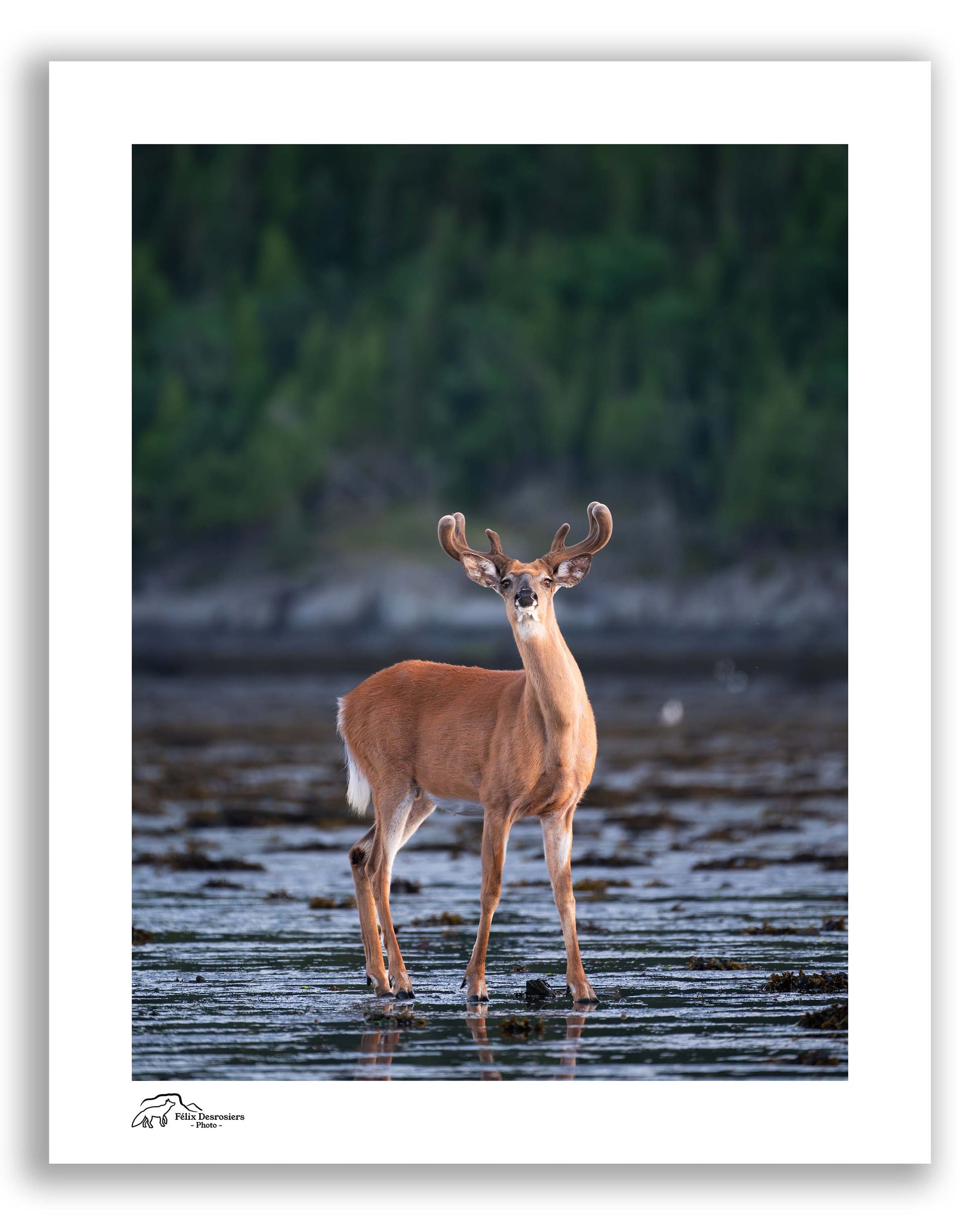 Un grand mâle que j'ai croisé sur la plage. La grosseur de ses bois est impressionnante, et ils n’avaient vraiment pas finis de grandir!