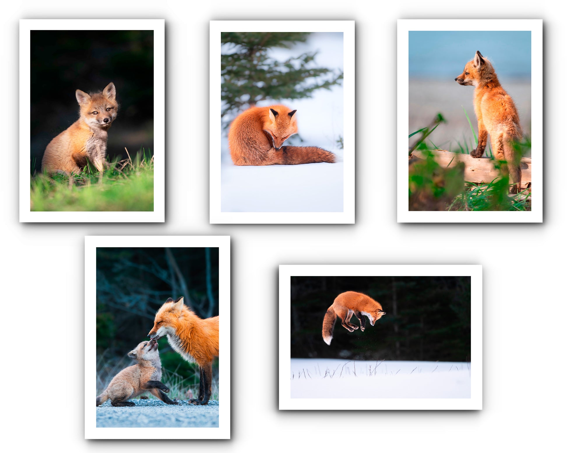 Ensemble de 5 cartes de souhait de renards à rabais.